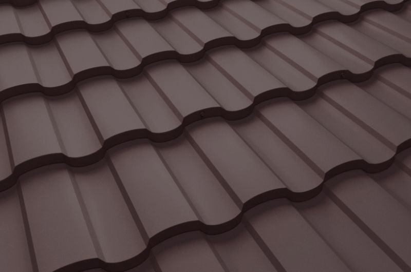 Оттенок RR 32 — насыщенный темно-коричневый, имитирующий натуральную глиняную черепицу. Он гармонично вписывается в ландшафт, добавляя зданию элегантности и тепла.