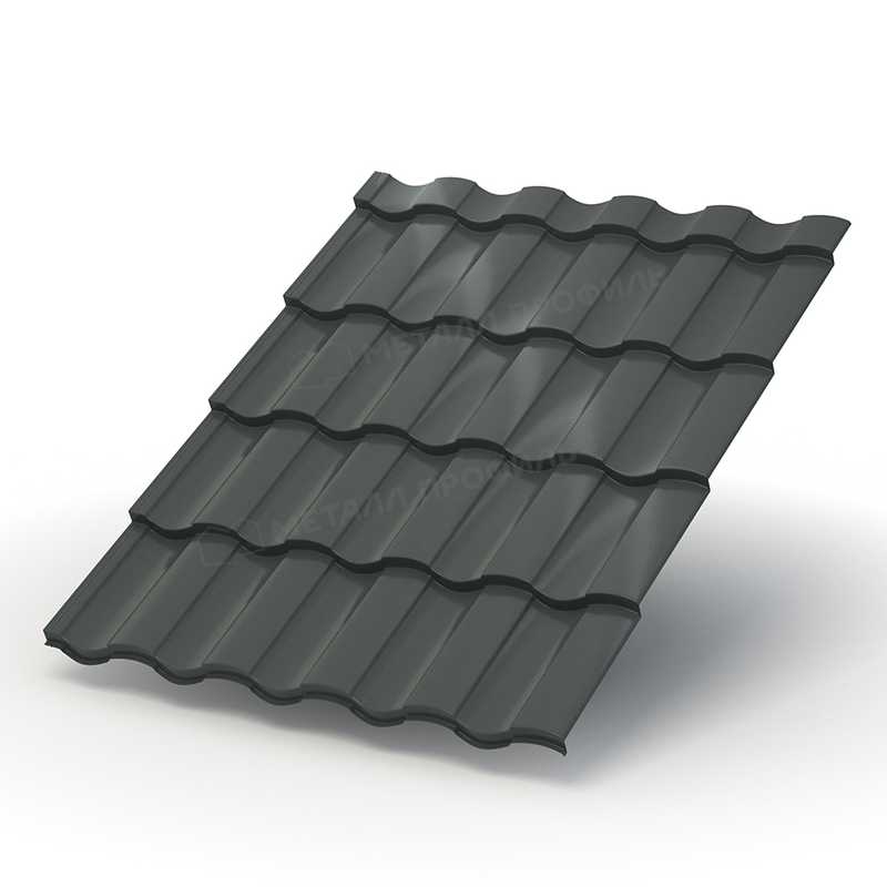 Металлочерепица с профилем Монтекристо-SL толщиной 0,5 мм и покрытием PURETAN® в темно-сером цвете RR 23 представляет собой надежный кровельный материал от компании Металл-Профиль. Этот продукт сочетает в себе эстетику классической черепицы с прочностью металла, обеспечивая долговечность и защиту от внешних воздействий. Идеально подходит для крыш жилых домов, гаражей и коммерческих объектов, предлагая оптимальное соотношение цены и качества.